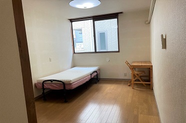 - ベッド、エアコン、テーブル、イス、収納ボックス